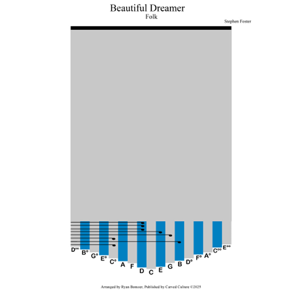 © Carved Culture. All rights reserved. This digital sheet music of Beautiful Dreamer is based on a public domain melody. By purchasing this sheet music, you are granted a license for personal, educational, or non-commercial use only. Redistribution or commercial use of the sheet music is prohibited. All artwork and presentation of the sheet music are the property of Carved Culture.