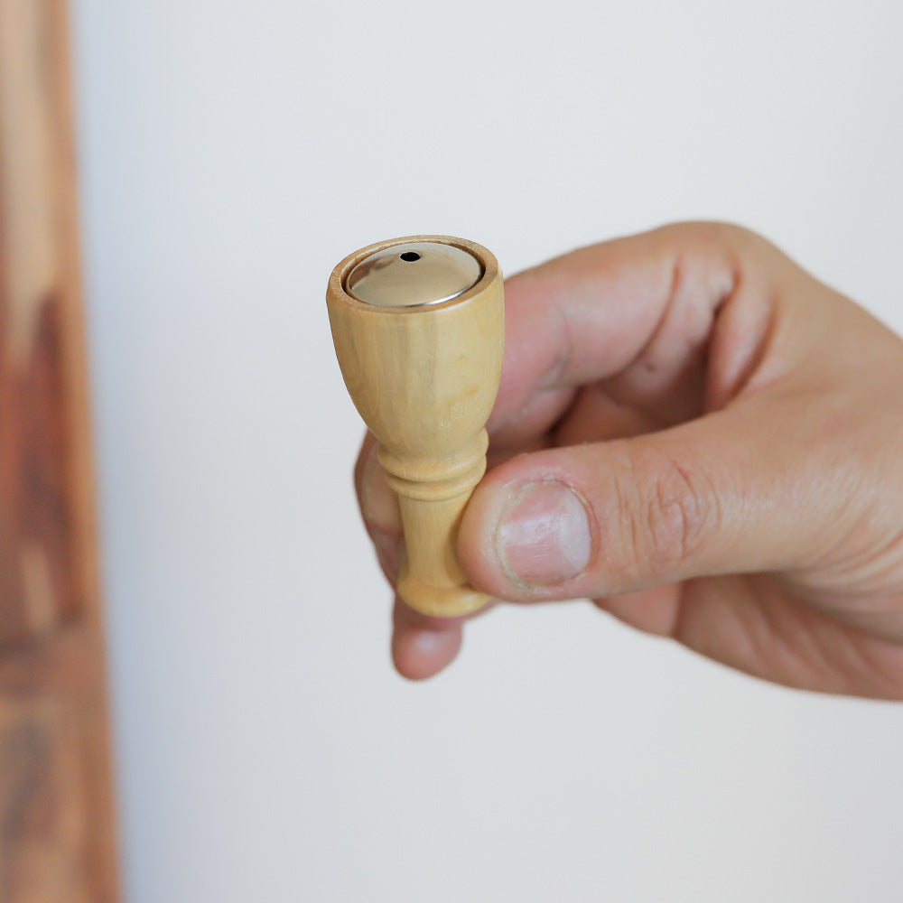 Blow gently into the correct end of the birdcaller while adjusting your airflow to mimic the call of a skylark. Varying the pressure can help refine the sound.