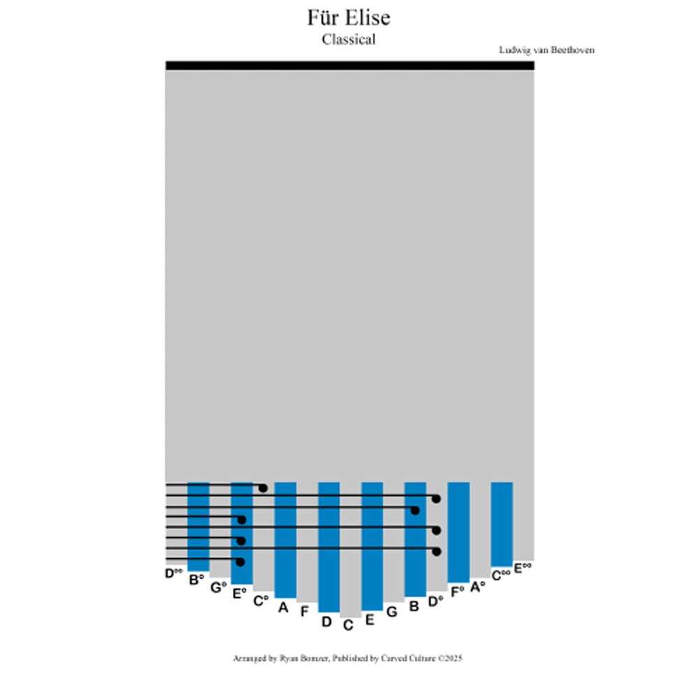 © Carved Culture. All rights reserved. This digital sheet music of Fur elise is based on a public domain melody. By purchasing this sheet music, you are granted a license for personal, educational, or non-commercial use only. Redistribution or commercial use of the sheet music is prohibited. All artwork and presentation of the sheet music are the property of Carved Culture.