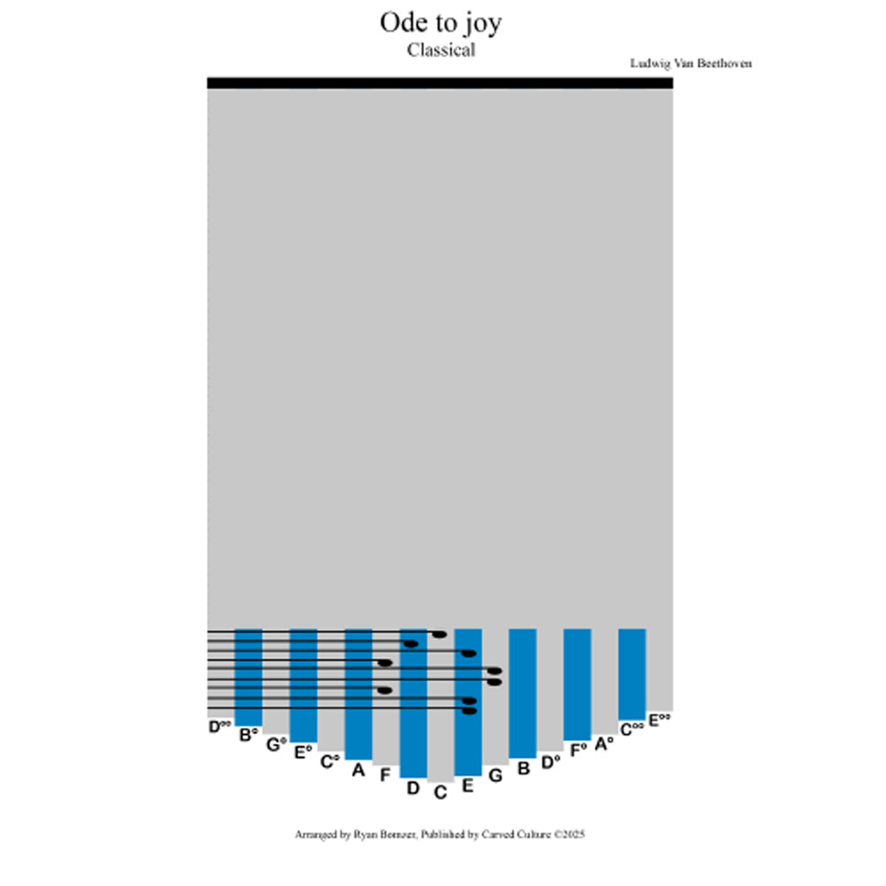 © Carved Culture. All rights reserved. This digital sheet music of Ode To Joy is based on a public domain melody. By purchasing this sheet music, you are granted a license for personal, educational, or non-commercial use only. Redistribution or commercial use of the sheet music is prohibited. All artwork and presentation of the sheet music are the property of Carved Culture.
